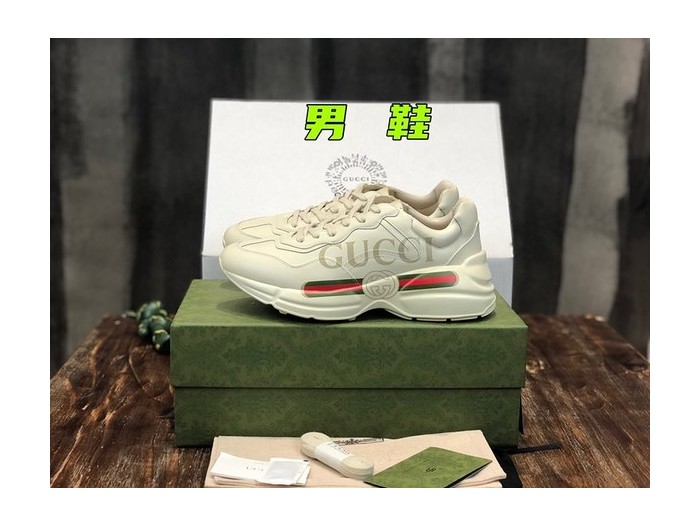 구찌 빈티지 로고 장식의 아이보리 레더 롸이톤 스니커즈 [매장가 130만원대]