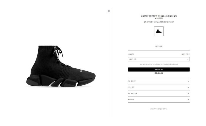 발렌시아가 스피드러너 SPEED 2.0 LACE-UP 리사이클드 니트 트레이너 블랙 [매장가140만원대] > 발렌시아가
