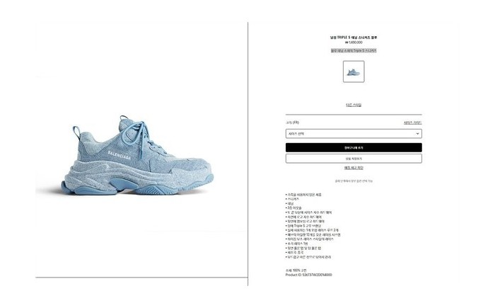 발렌시아가 블루 데님 소재의 Triple S 스니커즈 [매장가 140만원대]