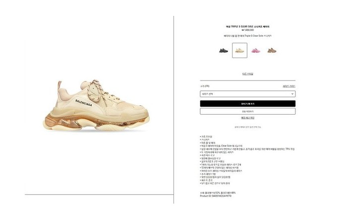 발렌시아가 베이지 더블 폼 앤 메쉬 Triple S Clear Sole 스니커즈 [매장가 140만원대] > 발렌시아가