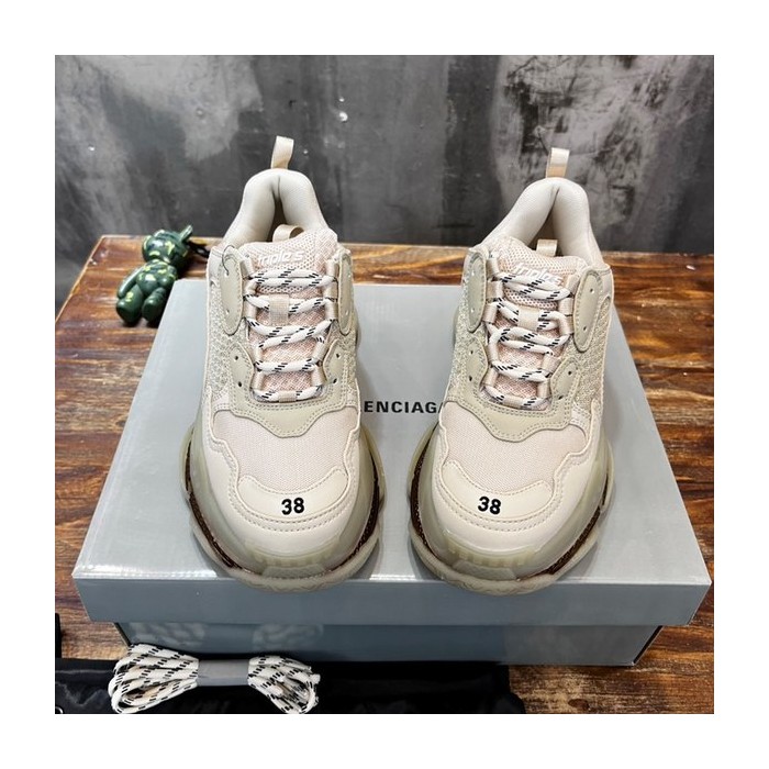 발렌시아가 베이지 더블 폼 앤 메쉬 Triple S Clear Sole 스니커즈 [매장가 140만원대]