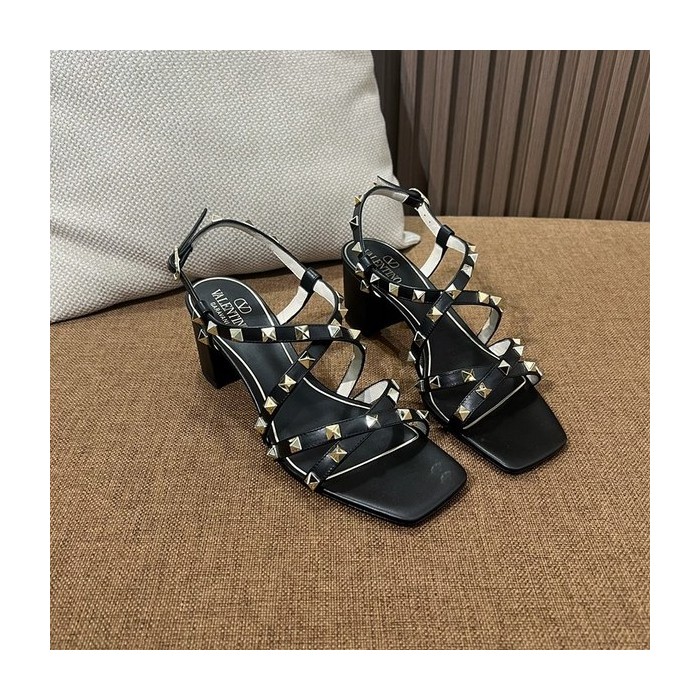 발렌티노 락스터드 송아지 가죽 스트랩 샌들 60MM 블랙 [매장가140만원대]