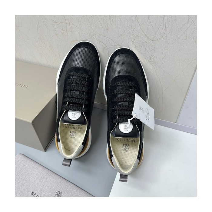 BRUNELLO CUCINELLI 브루넬로 쿠치넬리 남성 스웨이드 패치 펀칭 레더 스니커즈 / 블랙 [매장가189만원대] > 스니커즈