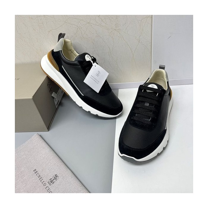 BRUNELLO CUCINELLI 브루넬로 쿠치넬리 남성 스웨이드 패치 펀칭 레더 스니커즈 / 블랙 [매장가189만원대]