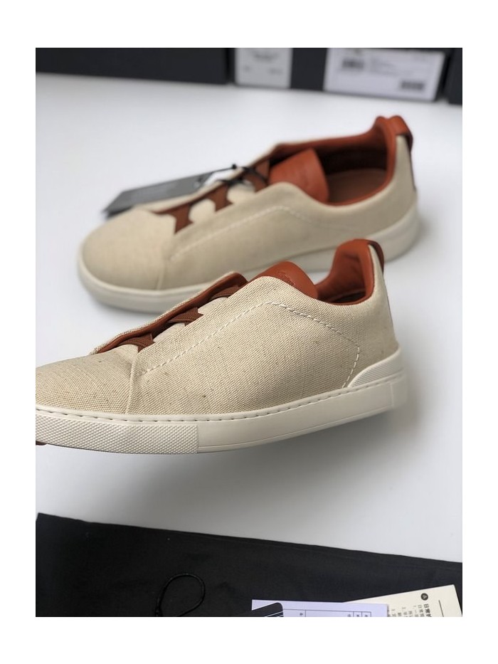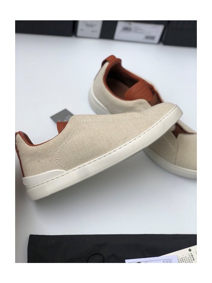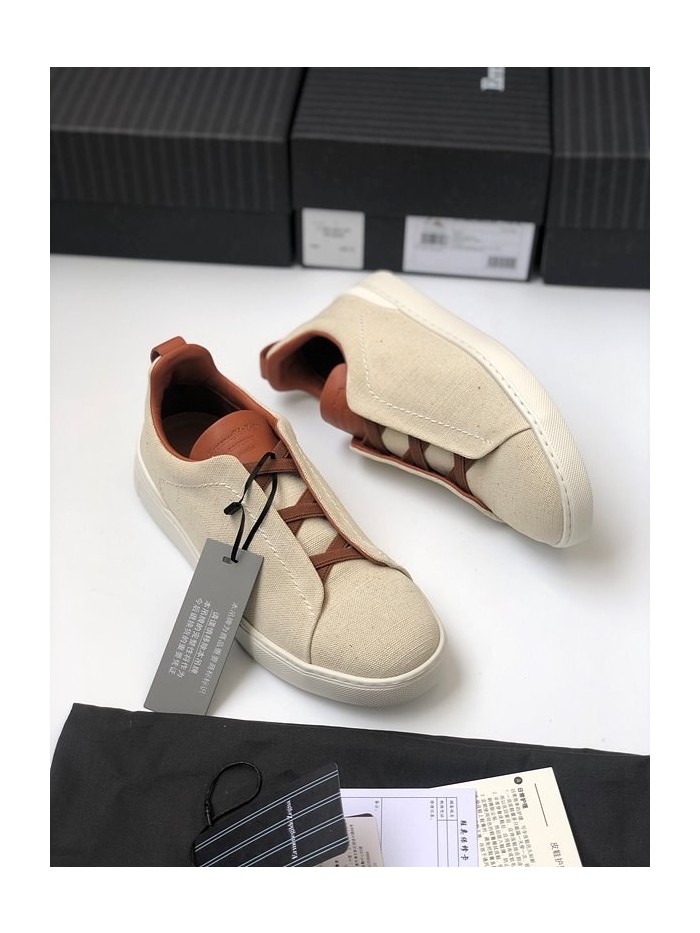 ZEGNA 제냐 트리플 스티치 로우탑 스니커즈 / 화이트디어스킨 [매장가119만원대]