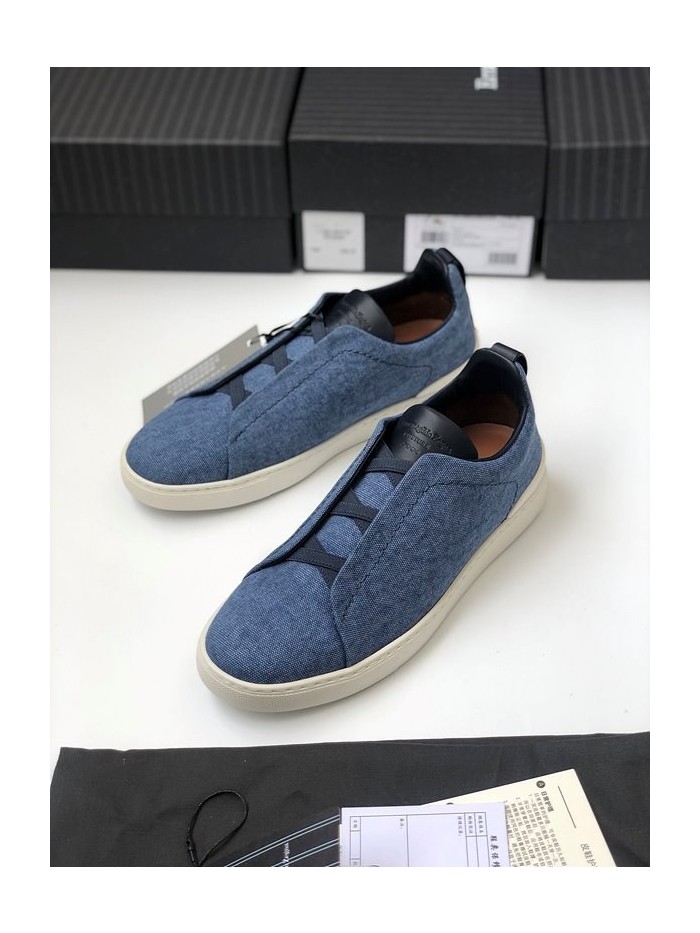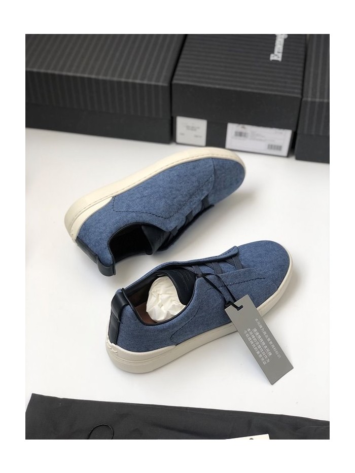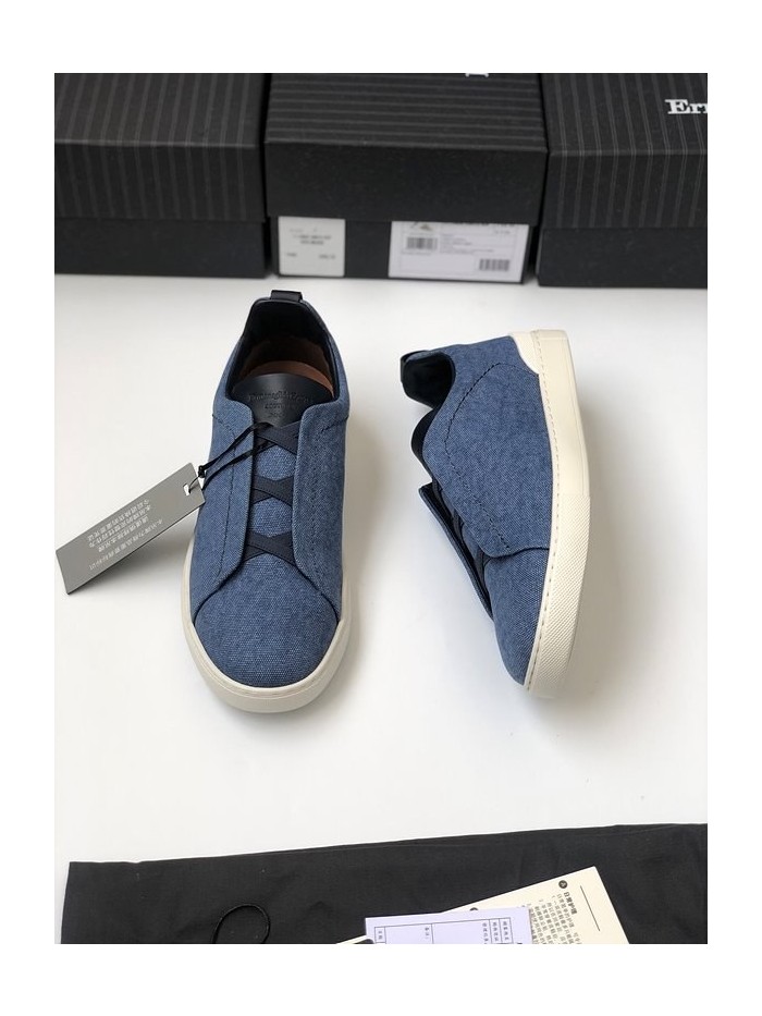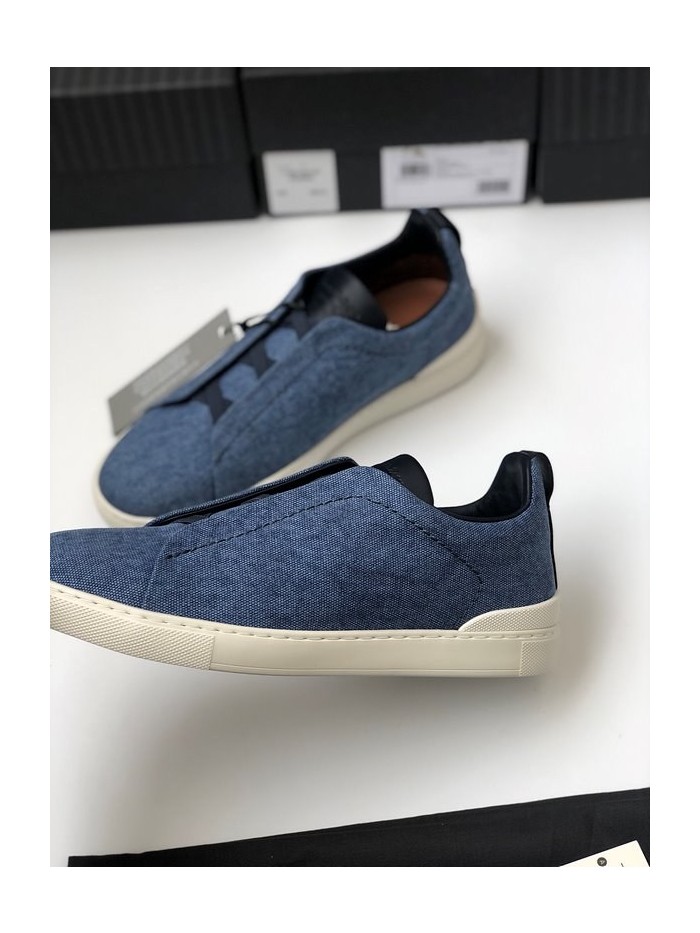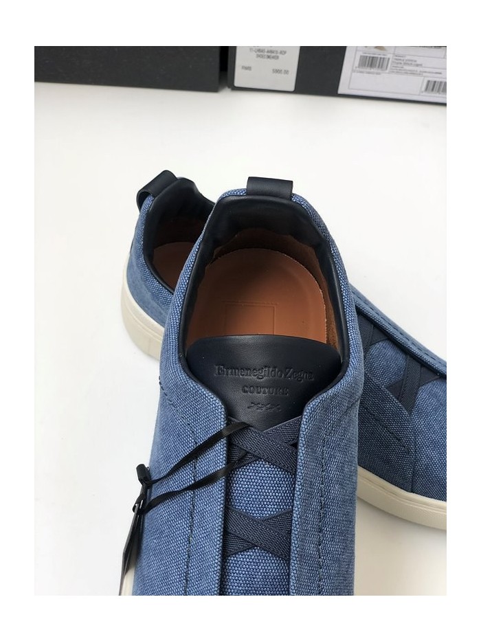 ZEGNA 제냐 트리플 스티치 로우탑 스니커즈 / 데님블루 [매장가119만원대]