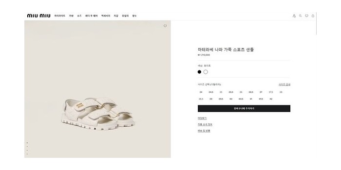 미우미우 마테라쎄 나파 가죽 스포츠 샌들 [매장가 171만원대] > 미우미우