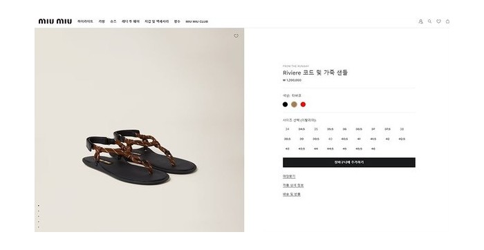 미우미우 Riviere 코드 및 가죽 샌들 [매장가 120만원대]