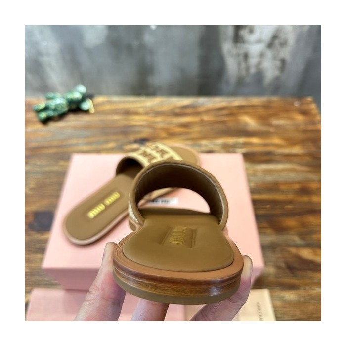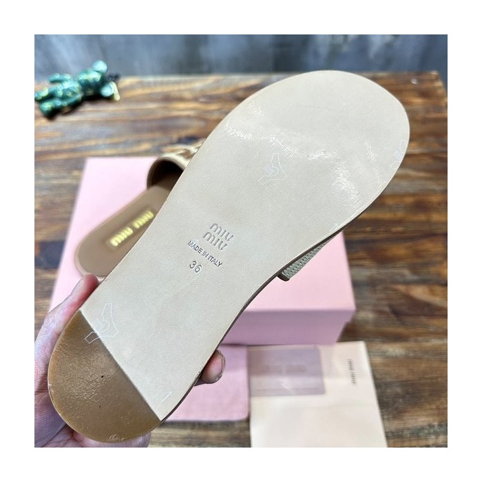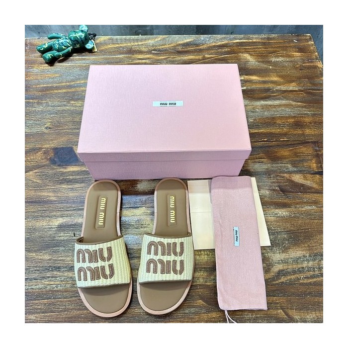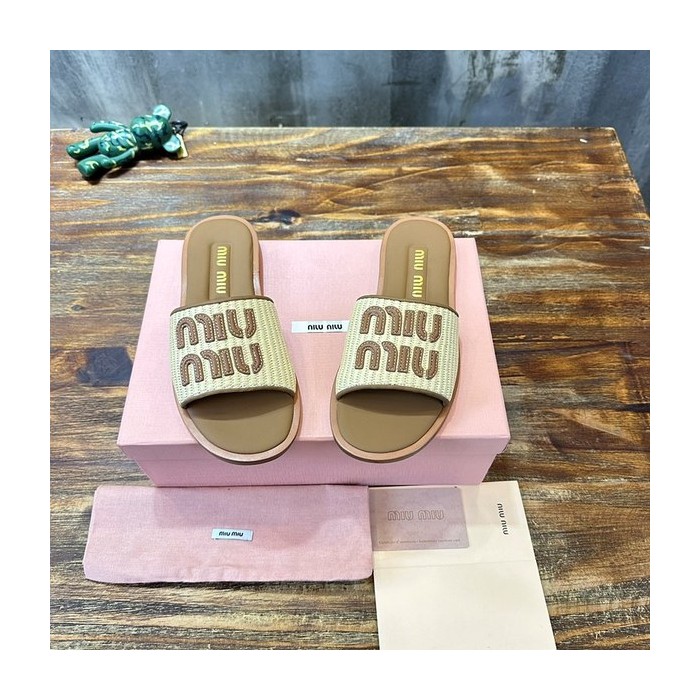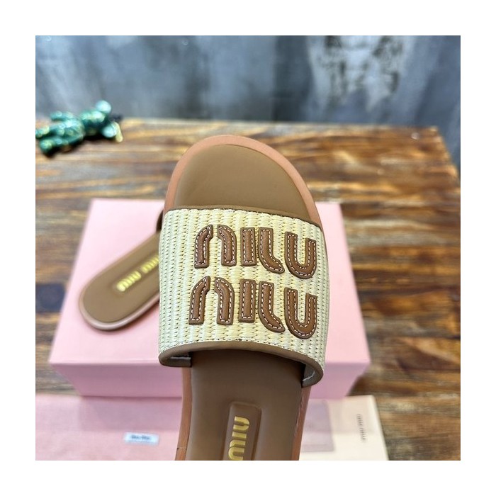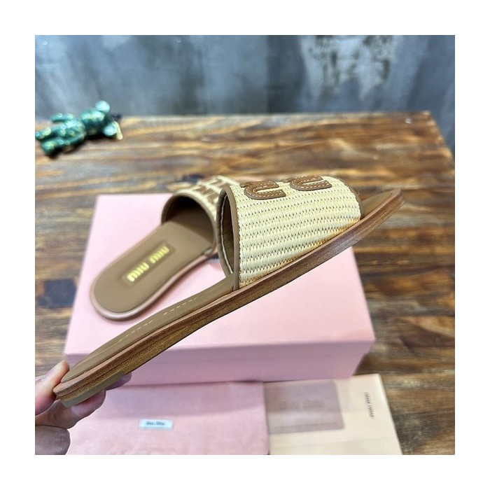 미우미우 라피아 효과 우븐 패브릭 슬라이드 [매장가 125만원대]
