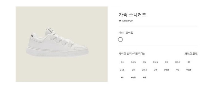미우미우 가죽 스니커즈 [매장가 130만원대] > 미우미우