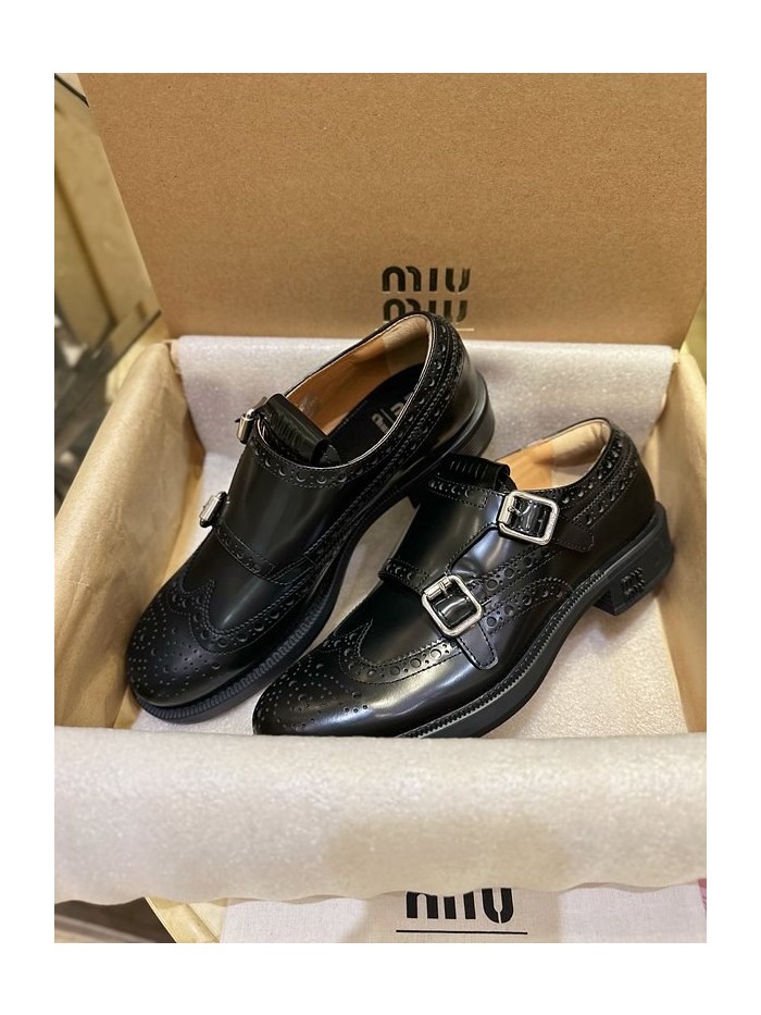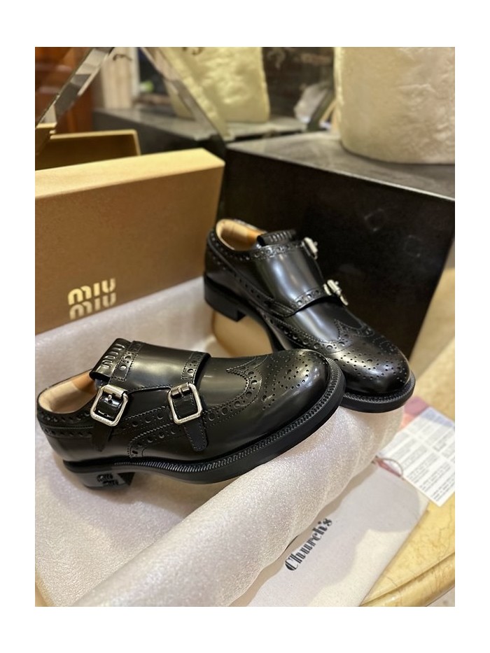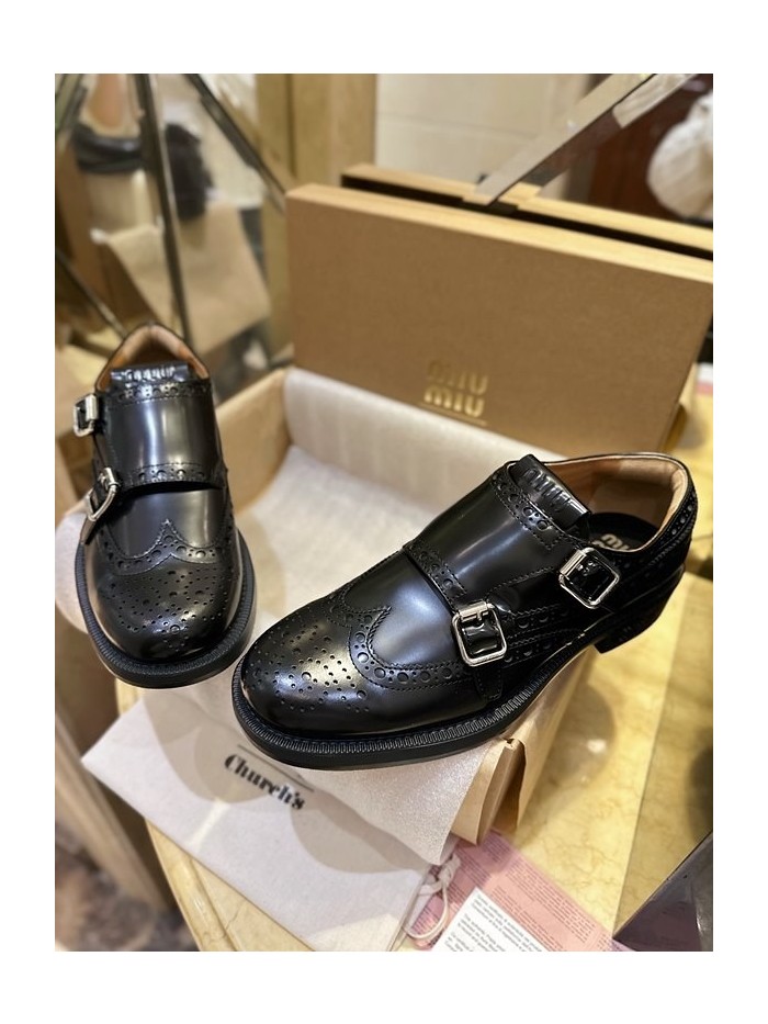 미우미우 x 처치스 브러쉬드 가죽 더블 몽크 브로그 슈즈 [매장가 172만원대]