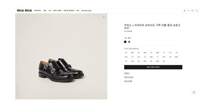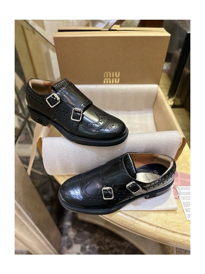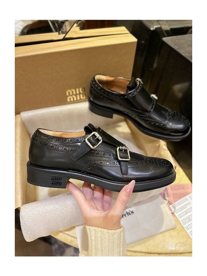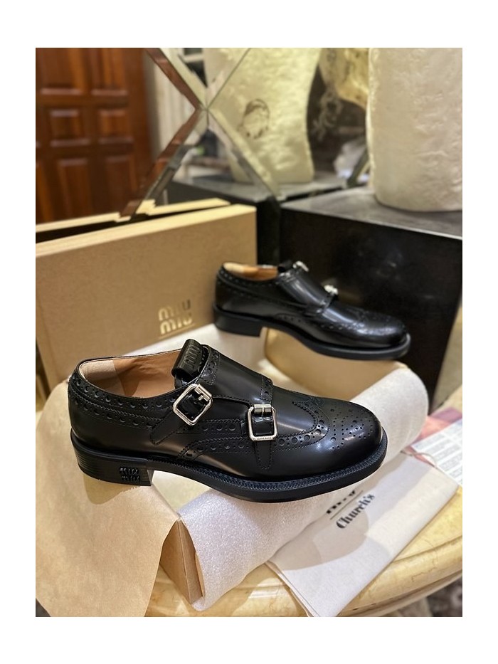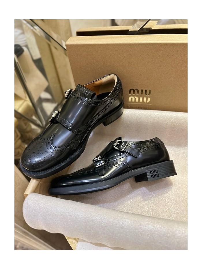 미우미우 x 처치스 브러쉬드 가죽 더블 몽크 브로그 슈즈 [매장가 172만원대] > 미우미우