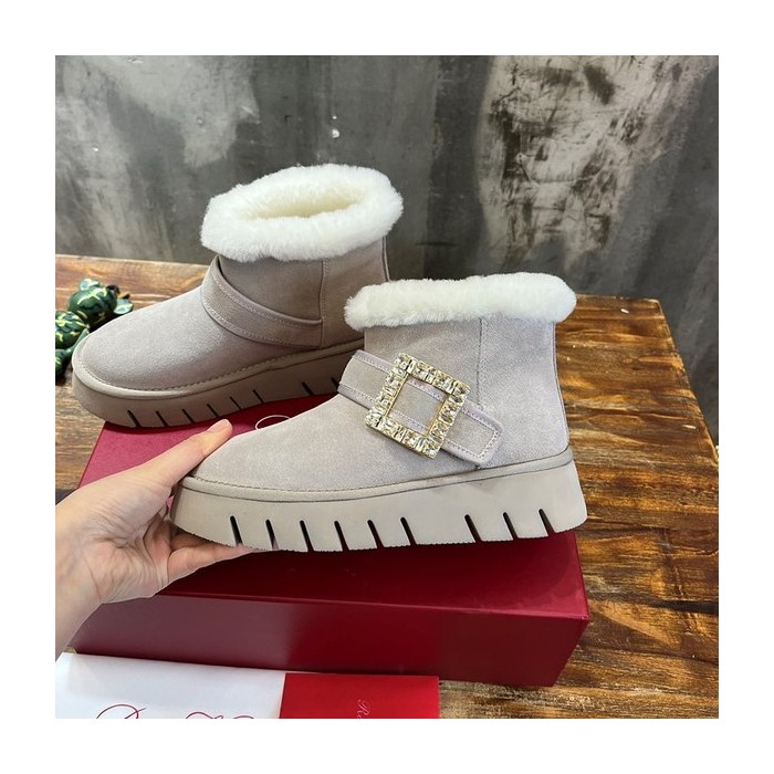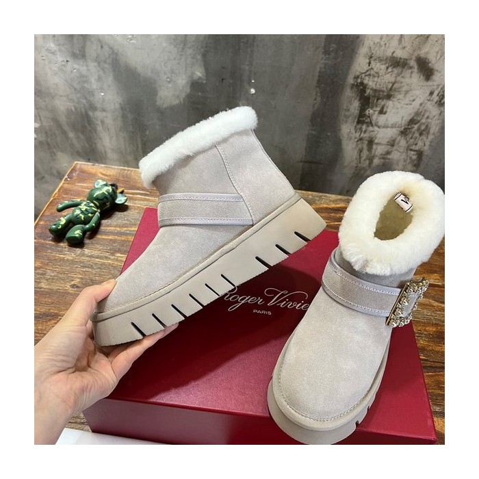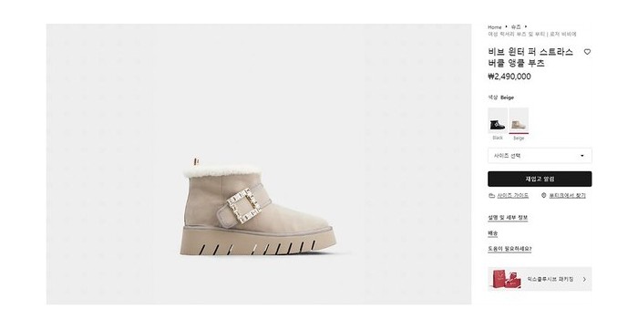 로저비비에 비브 윈터 퍼 스트라스 버클 앵클 부츠 베이지 [매장가 240만원대] > 부츠