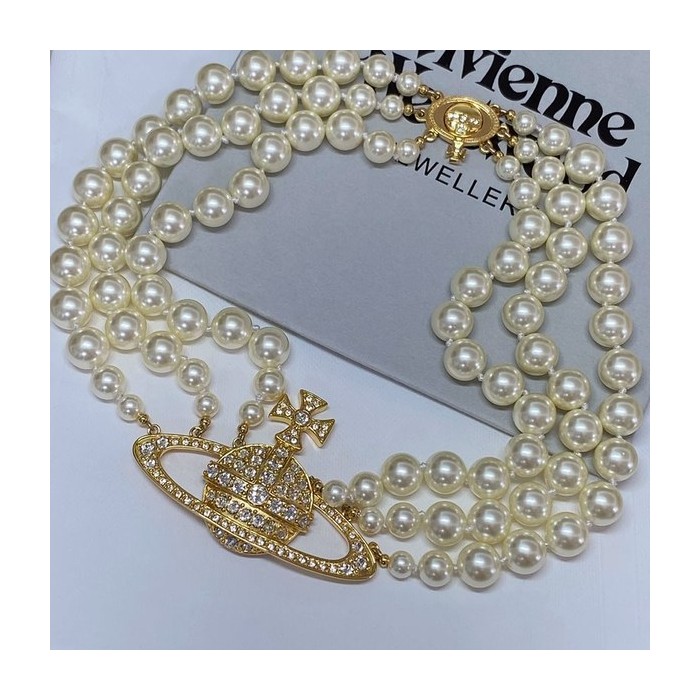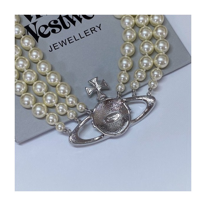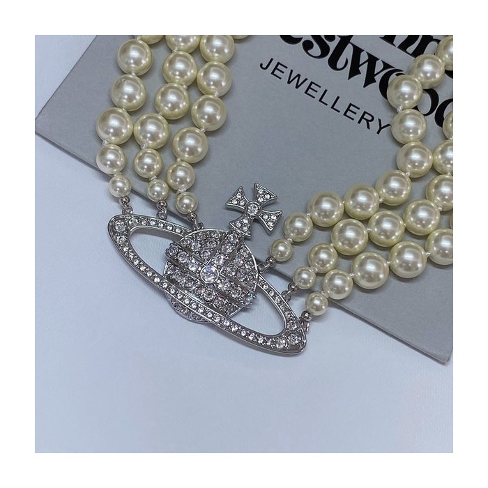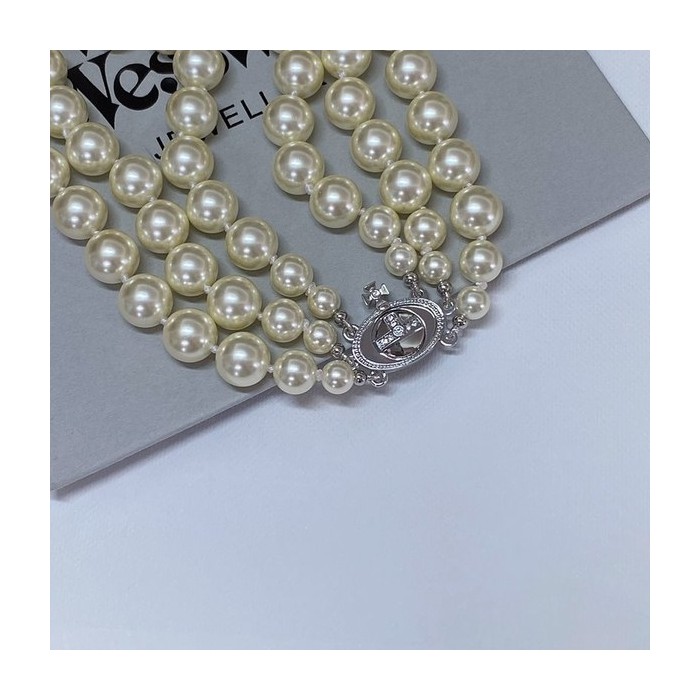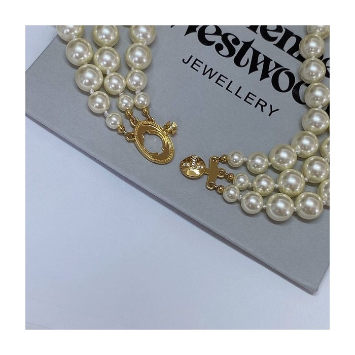 비비안웨스트우드 쓰리로우 펄 바스 릴리프 초커 목걸이 2color [매장가 113만원대]