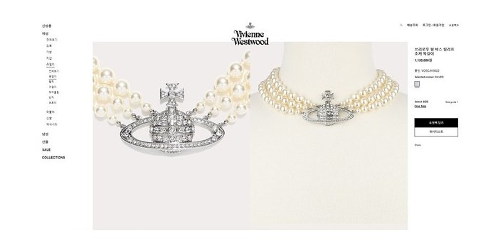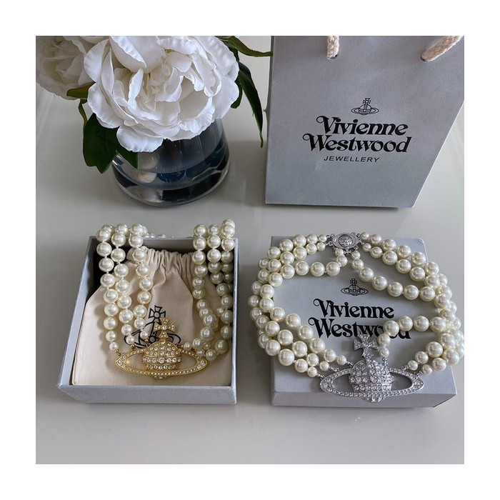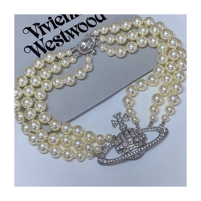 비비안웨스트우드 쓰리로우 펄 바스 릴리프 초커 목걸이 2color [매장가 113만원대] > 목걸이