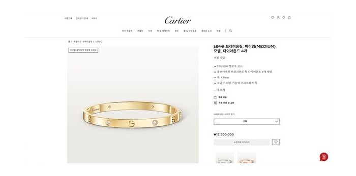 까르띠에 LOVE 브레이슬릿 미디엄 다이아몬드 4개 3color > 까르띠에