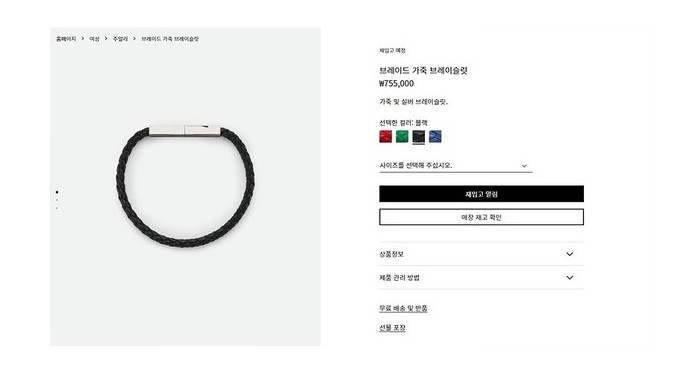 보테가베네타 브레이드 가죽 브레이슬릿 [매장가 76만원대]