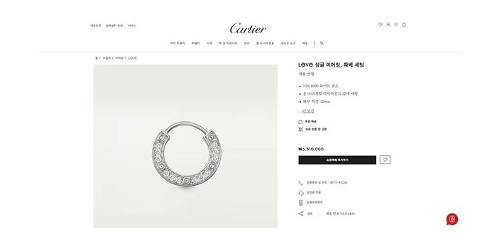 까르띠에 LOVE 싱글 이어링 파베 세팅 2color [매장가 351만원대] > 까르띠에