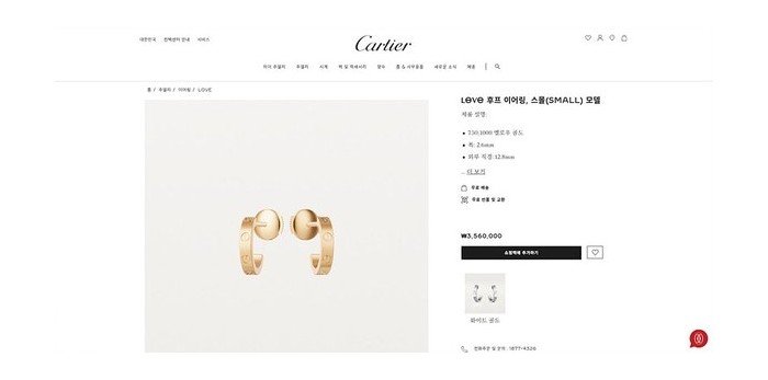 까르띠에 LOVE 후프 이어링 스몰 3color [매장가 356만원대]