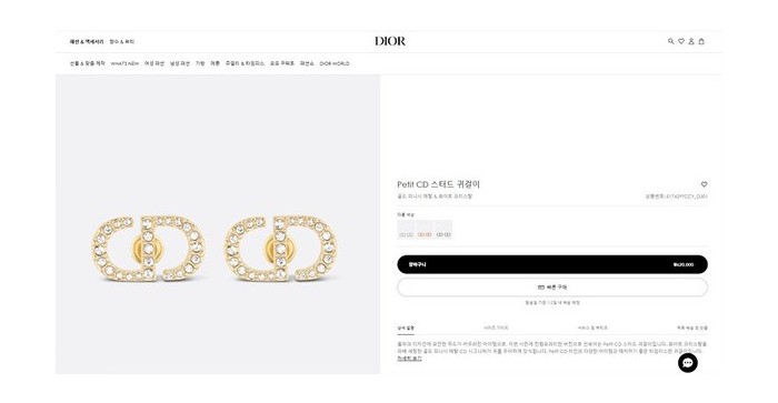 디올 Petit CD 스터드 귀걸이 2color [매장가 62만원대] > 디올