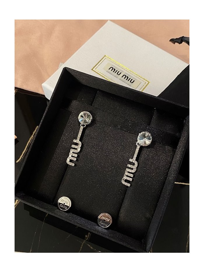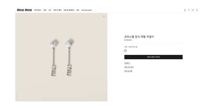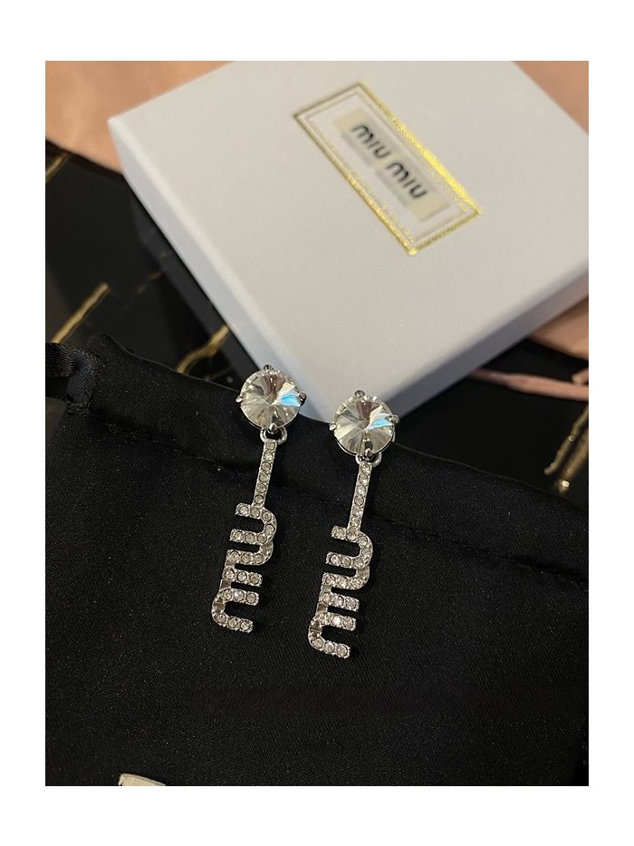 • 미우미우 크리스털 장식 메탈 귀걸이 [매장가 76만원대]