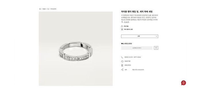 까르띠에 마이용 팬더 웨딩링, 세미 파베 2color [매장가 640만원대] > 까르띠에