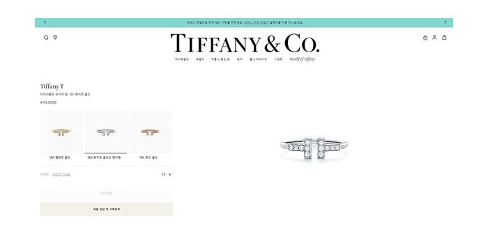 티파니앤코 T 다이아몬드 와이어 링 3color [매장가 400만원대] > 티파니