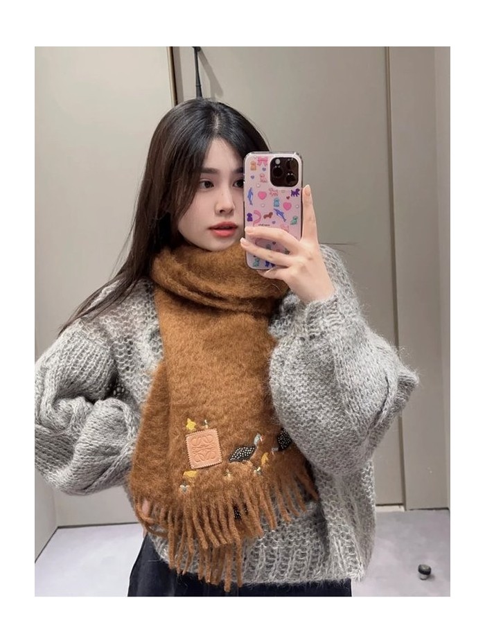 • 로에베 뿔닭 자수 무늬 스카프 [매장가 350만원대]