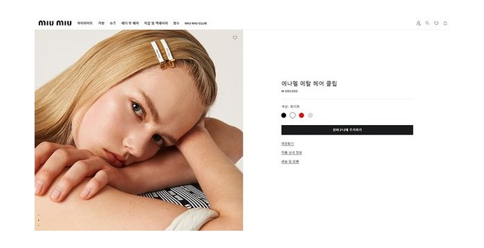 미우미우 에나멜 메탈 헤어 클립 2color [매장가 69만원대] > 미우미우