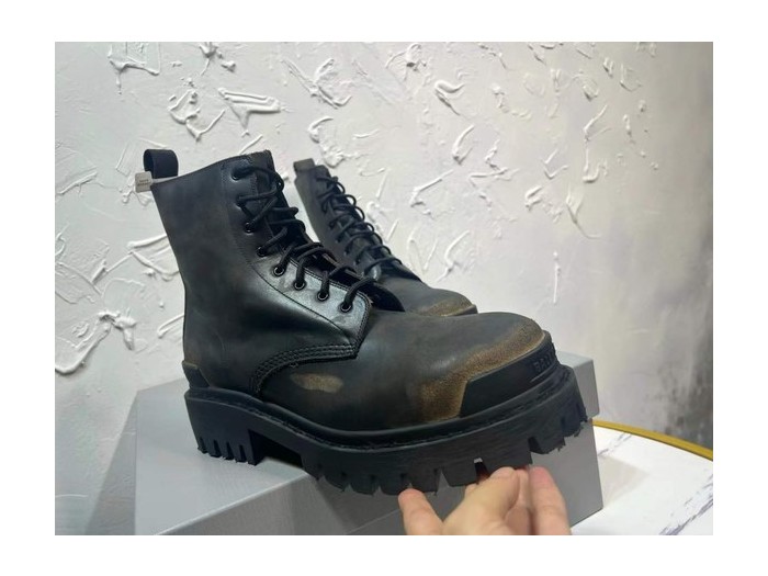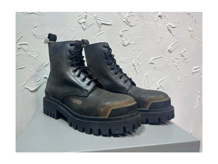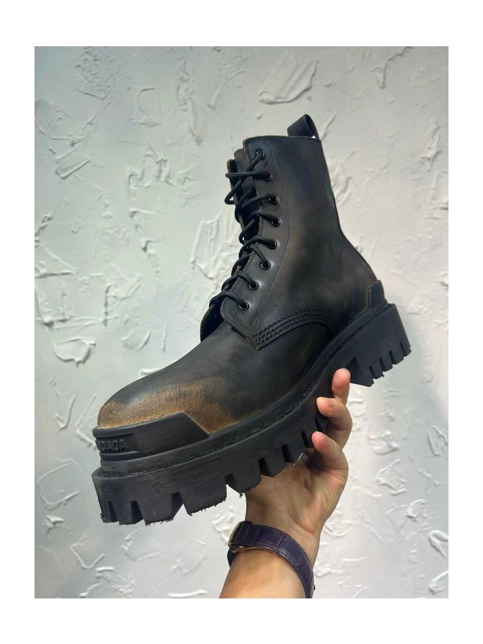 발렌시아가 2026 브라운 블랙 스트라이크 레이스업 부츠 > 발렌시아가