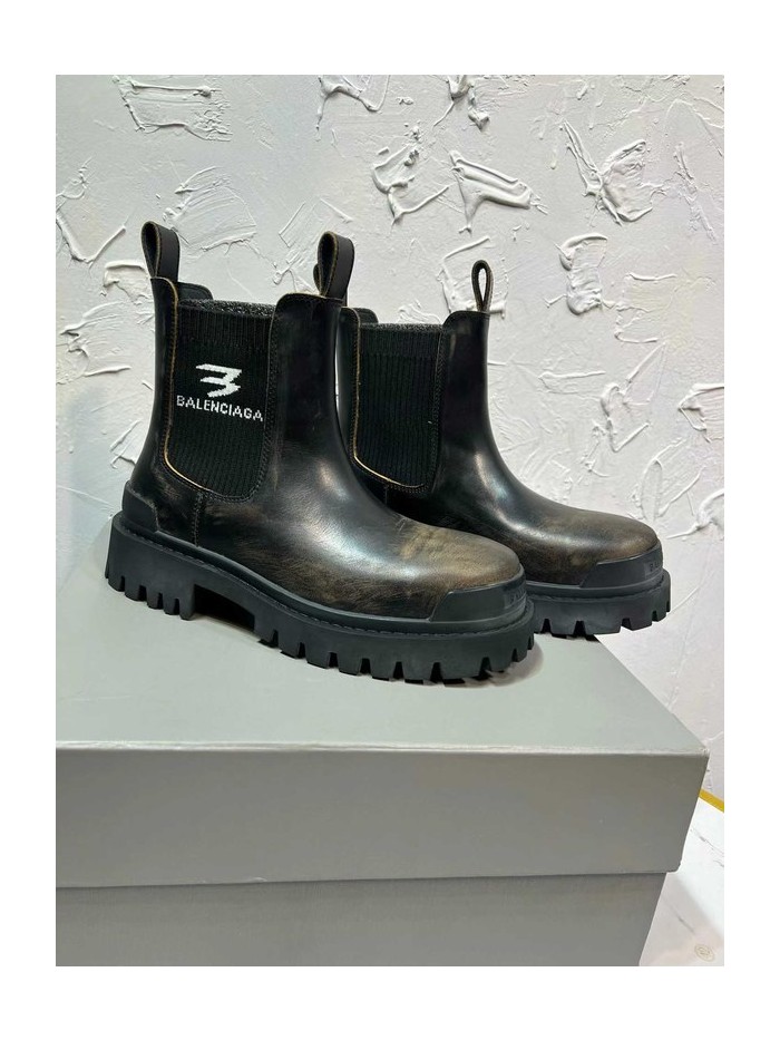 발렌시아가 2026 브라운 블랙 스트라이크 첼시 부츠 > 발렌시아가