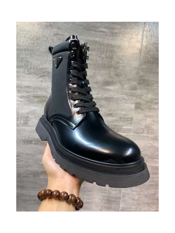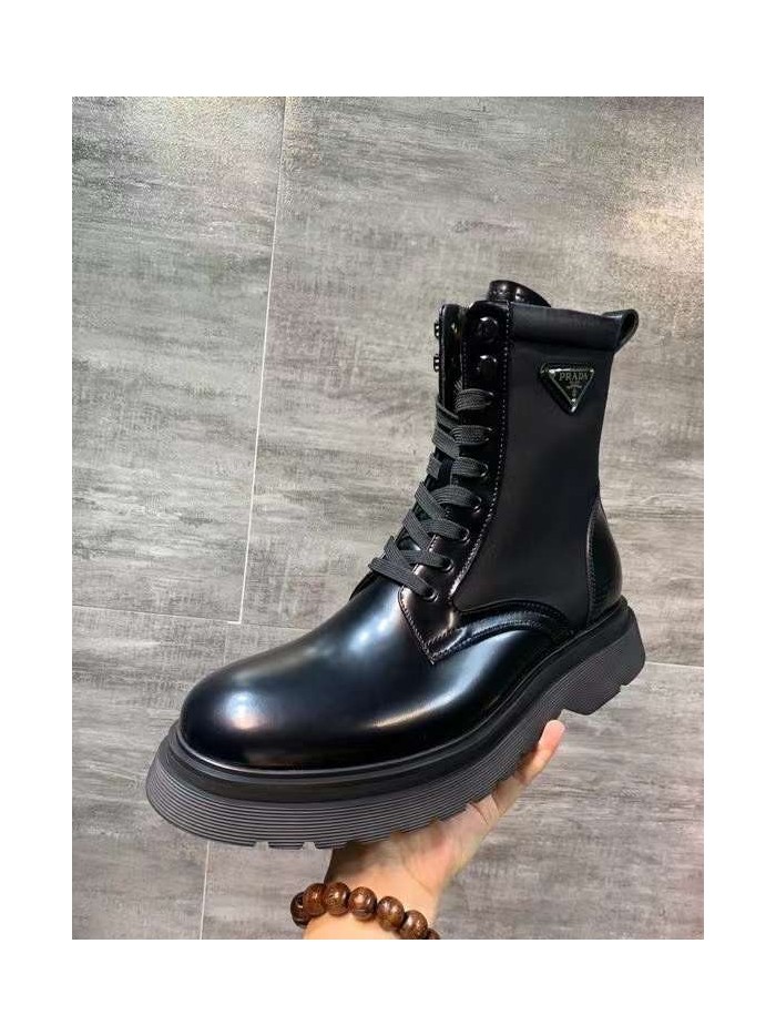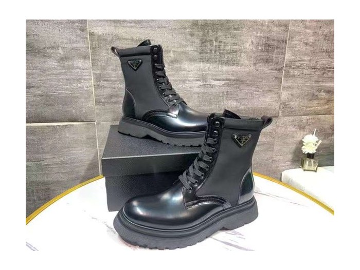 프라다 2022 사피아노 스틸와펜 나일론 믹스 레더 더비솔 부츠