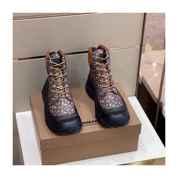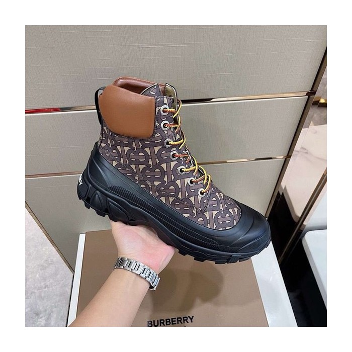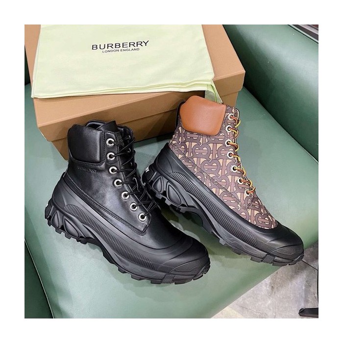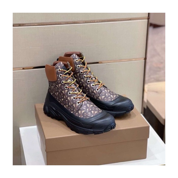 버버리 2022 컨트라스트 솔 모노그램 프린트 레더 부츠