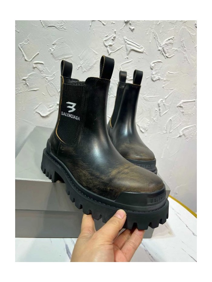 발렌시아가 2026 브라운 블랙 스트라이크 첼시 부츠 > 발렌시아가