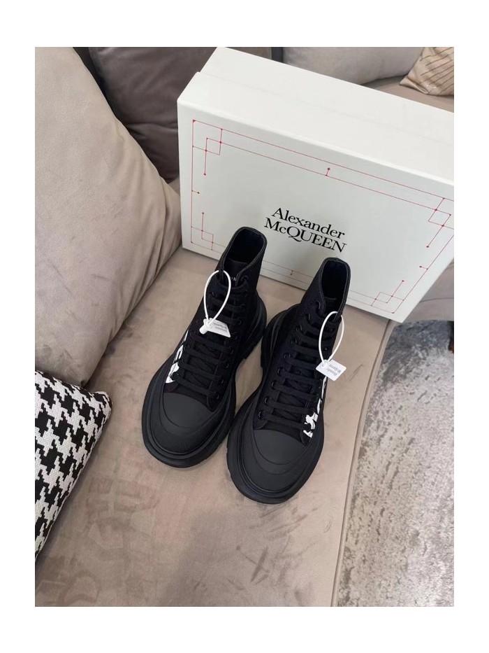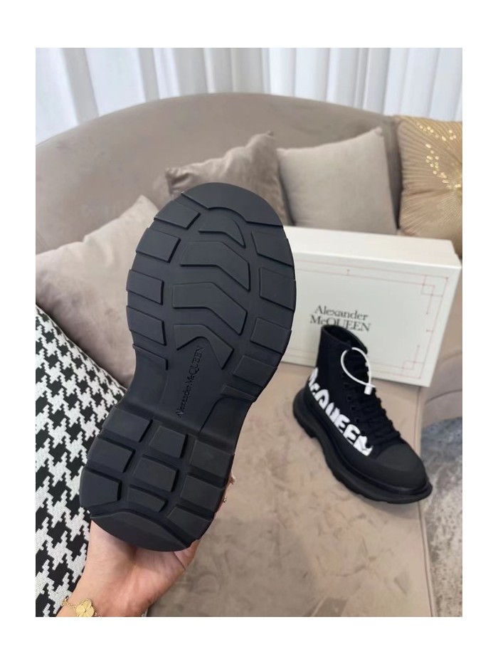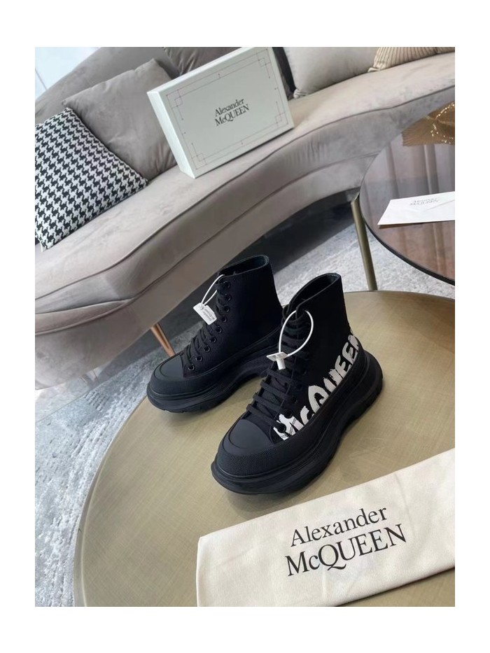 알렉산더맥퀸 2021 트레드 슬릭 하이탑 스니커즈 레터링 블랙