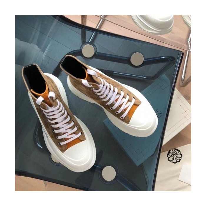 알렉산더맥퀸 2020 트레드 슬릭 하이탑 슈즈 브라운스웨이드 컬러