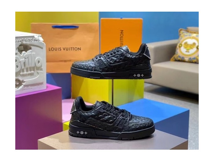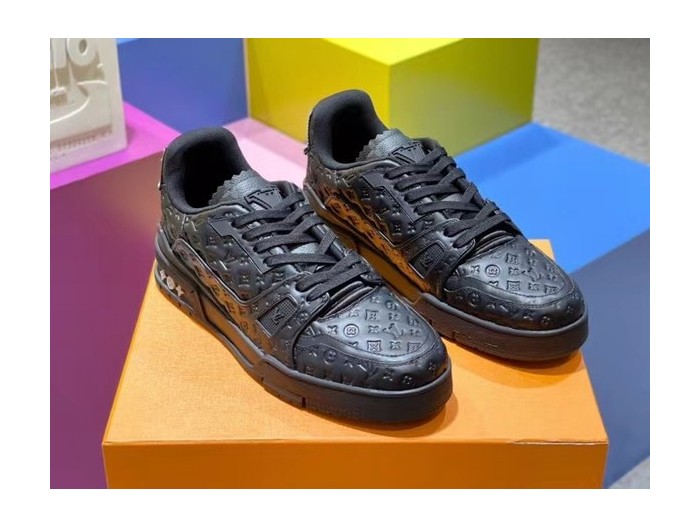 루이비통 2021 모노그램 엠보로고 올블랙 LV 트레이너 스니커즈