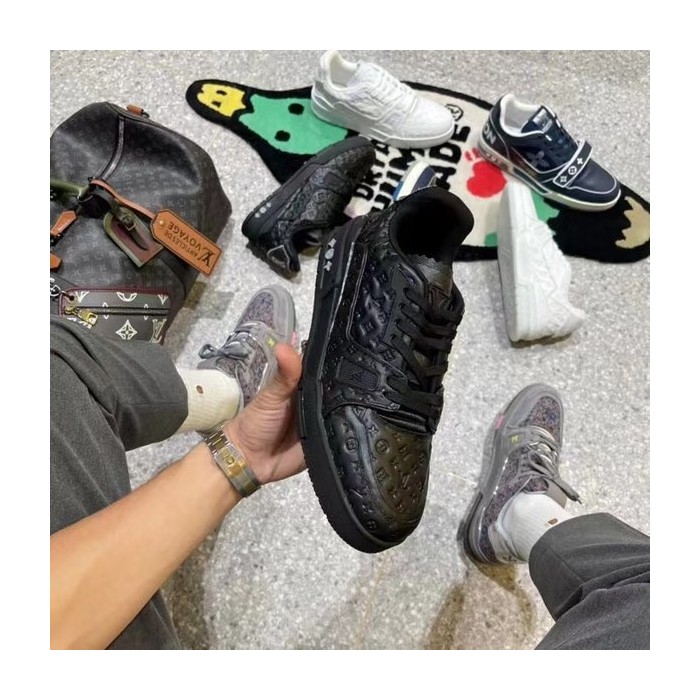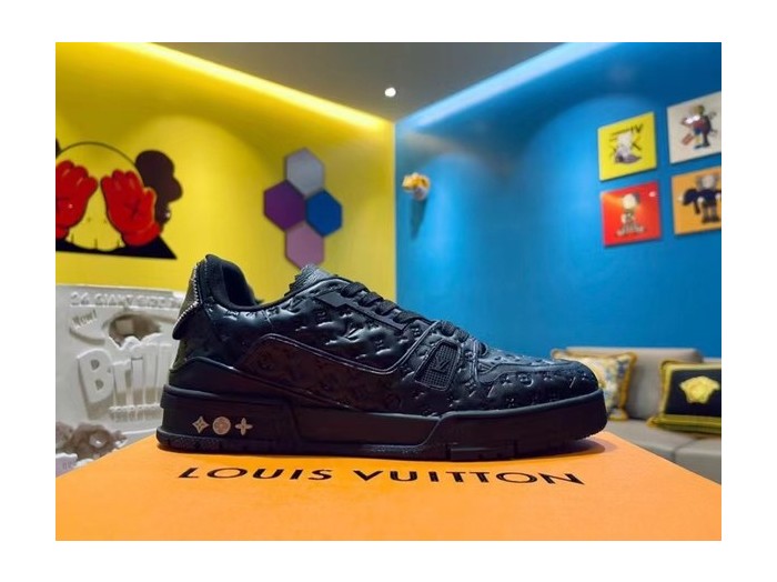 루이비통 2021 모노그램 엠보로고 올블랙 LV 트레이너 스니커즈 > 루이비통