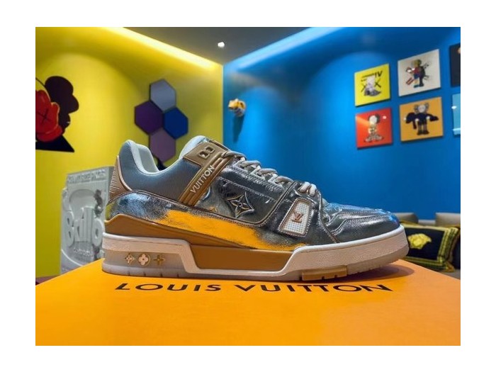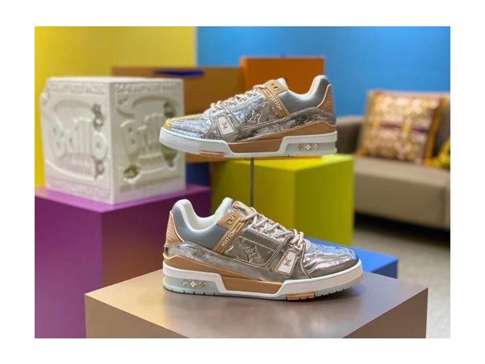 루이비통 2021 크롬실버 밀키브라운 컬러 LV 트레이너 스니커즈
