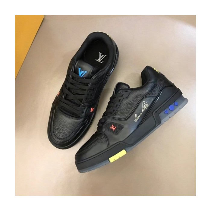 루이비통 2021 뉴컬러 블랙 멀티컬러 LV 트레이너 스니커즈