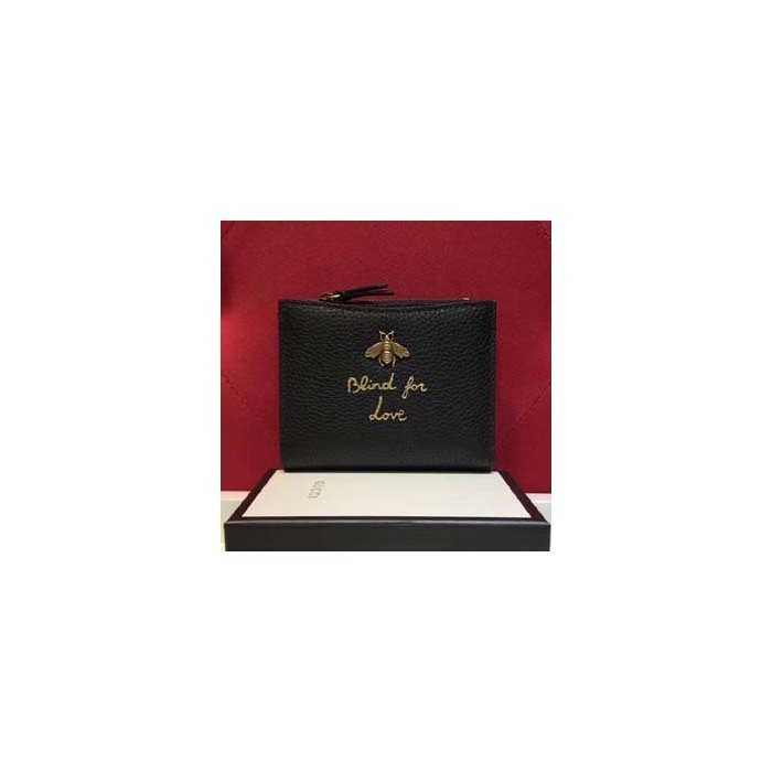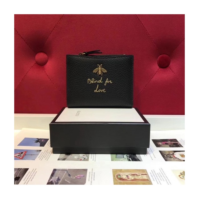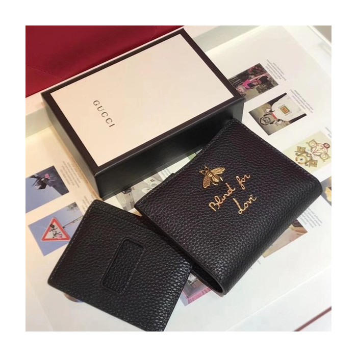 구찌 벌 가죽 카드 반지갑 블랙 498094