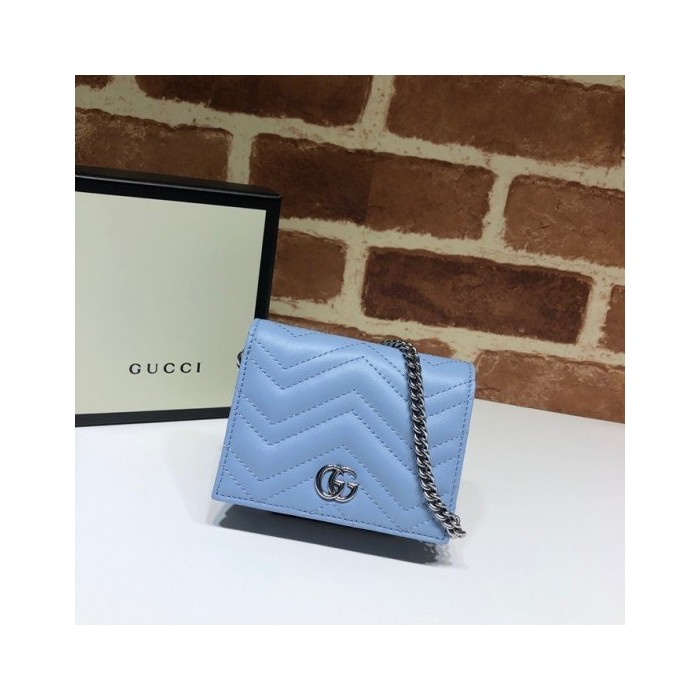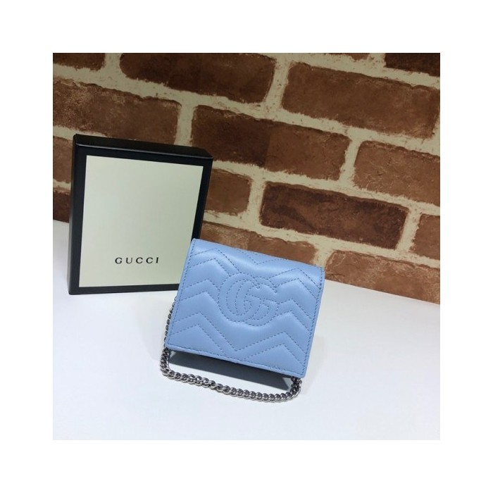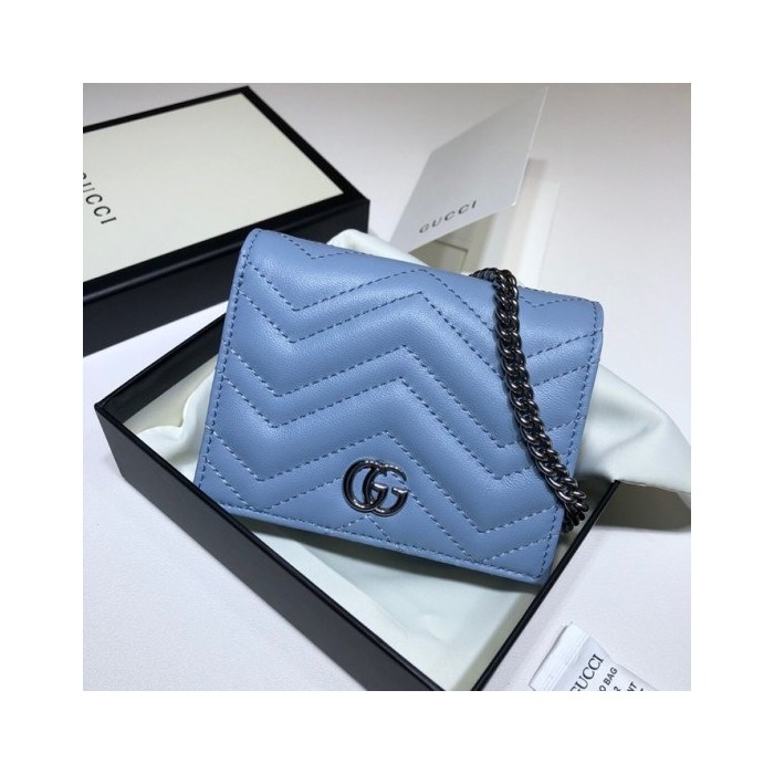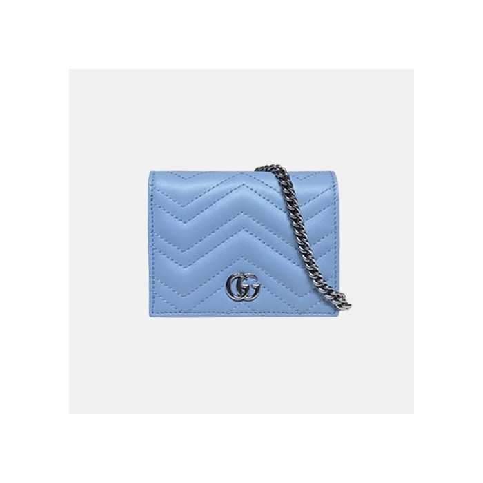 Gucci 2020 Ladies Leather Chain Wallet ,625693- 구찌 2020 여성용 레더 체인 반지갑,GUW0154.Size(11cm), 스카이블루 > 지갑