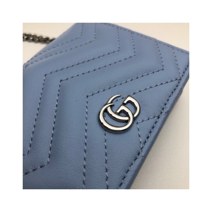 Gucci 2020 Ladies Leather Chain Wallet ,625693- 구찌 2020 여성용 레더 체인 반지갑,GUW0154.Size(11cm), 스카이블루