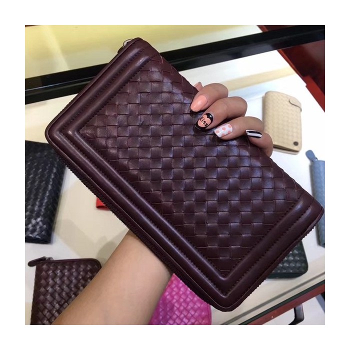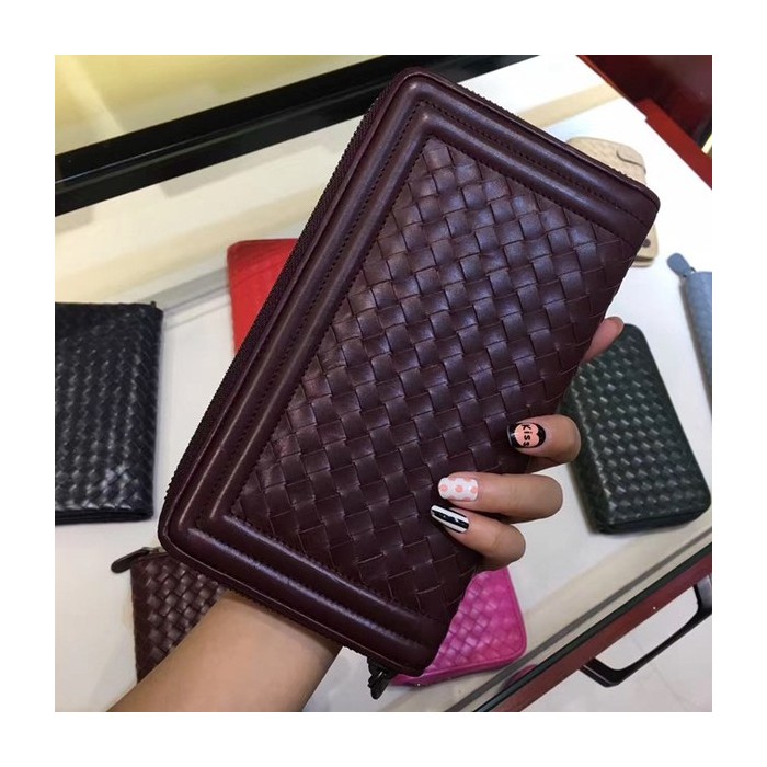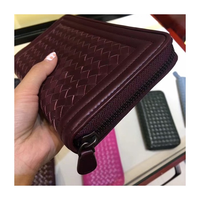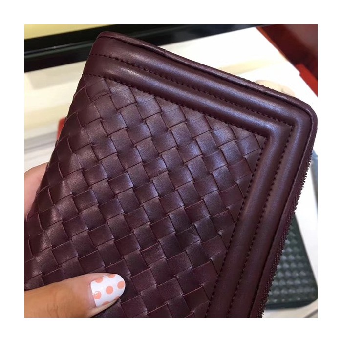 Bottega Veneta [미러급] 보테가베네타 지퍼장지갑 13180 와인 (송아지가죽)