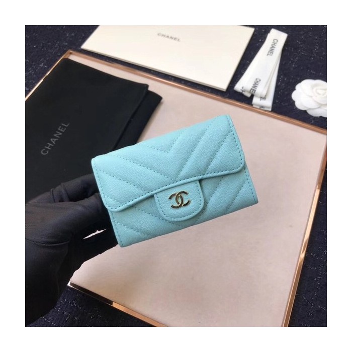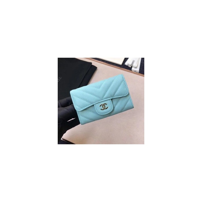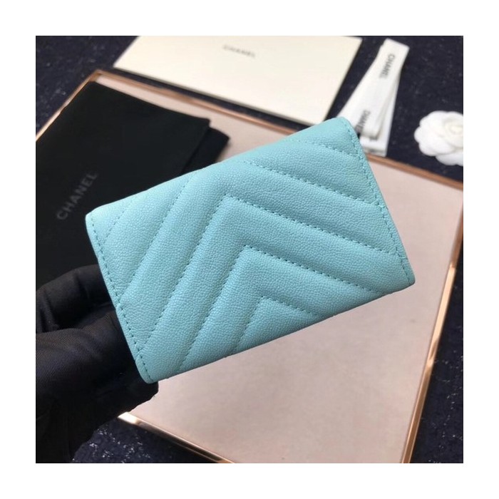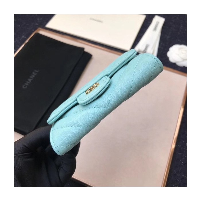• (미러급) 샤넬 캐비어 플랩카드지갑 스카이블루