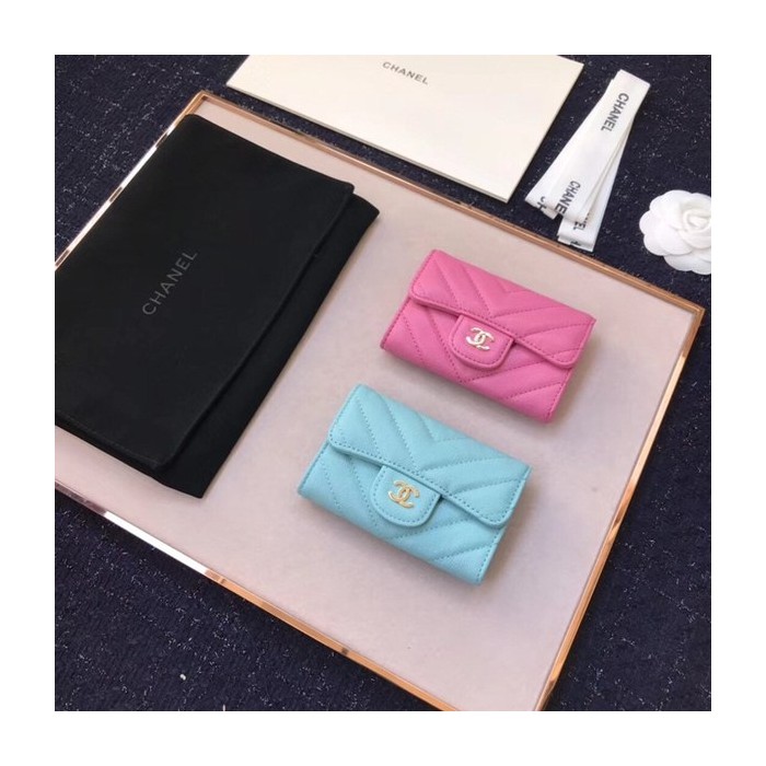 (미러급) 샤넬 캐비어 플랩카드지갑 스카이블루 > 지갑