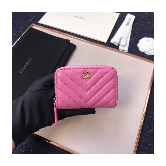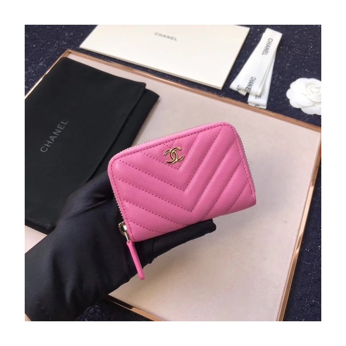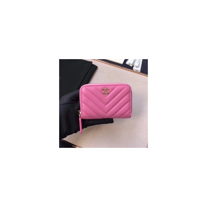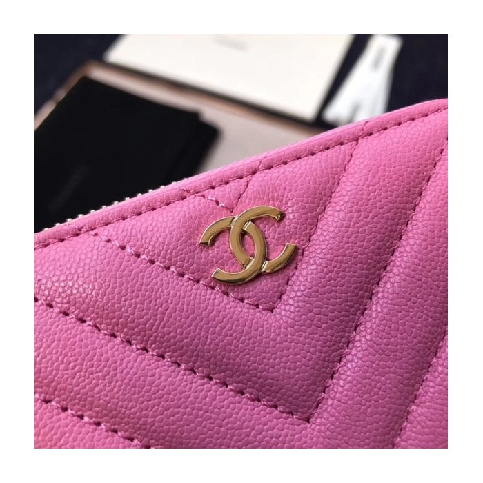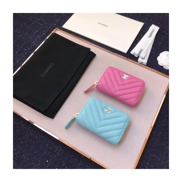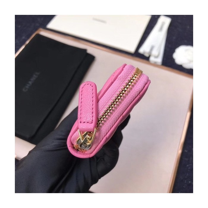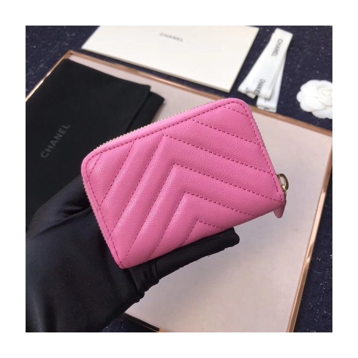 • (미러급) 샤넬 캐비어 쉐브론 카드지갑 핫핑크