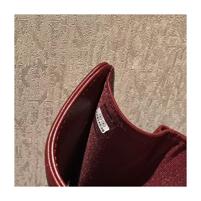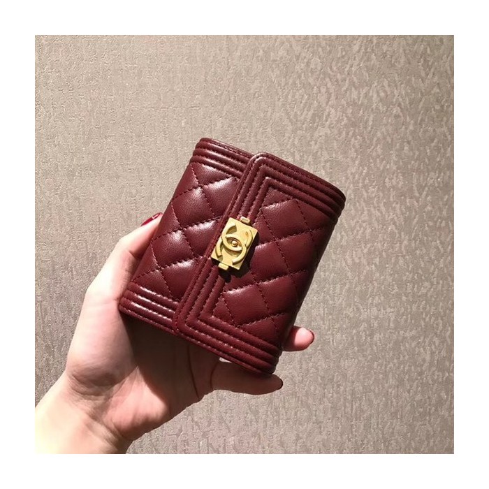 샤넬 보이 반지갑 램스킨 와인 금장 > 샤넬