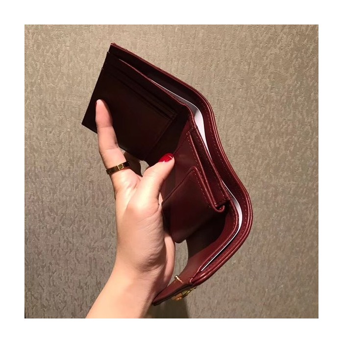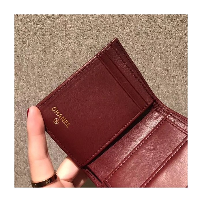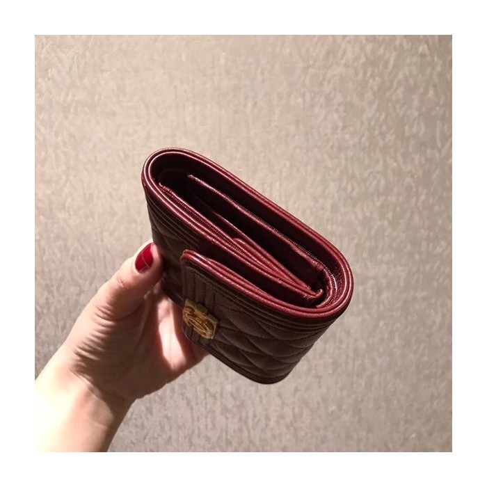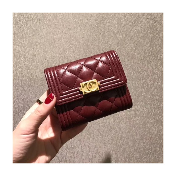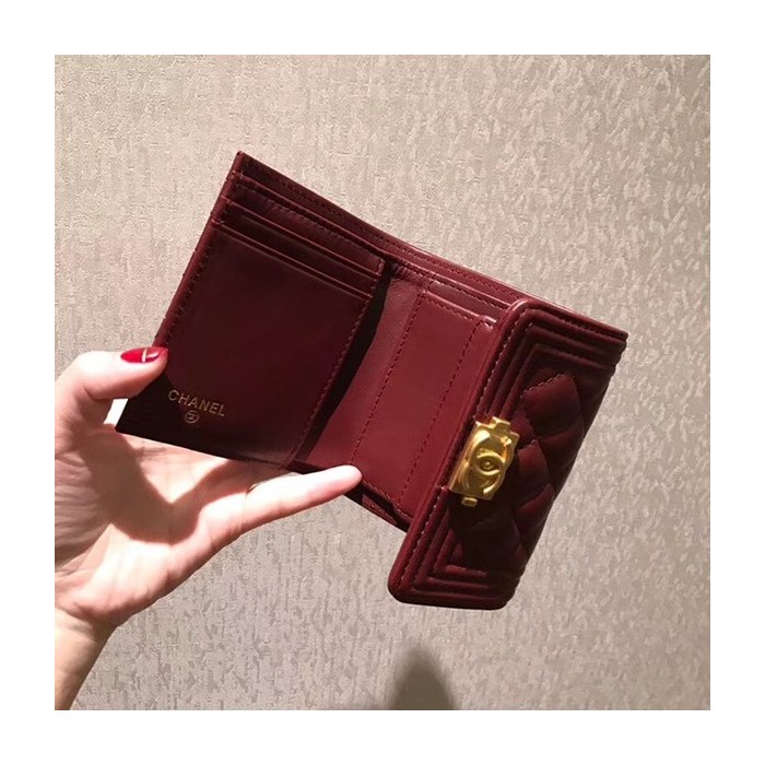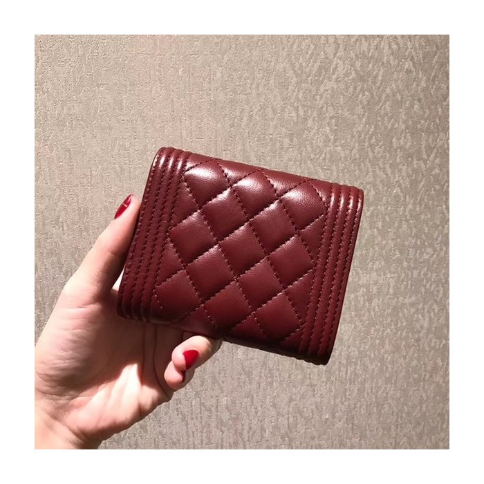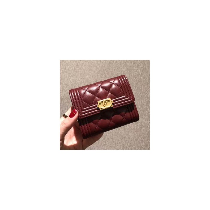 샤넬 보이 반지갑 램스킨 와인 금장 > 샤넬