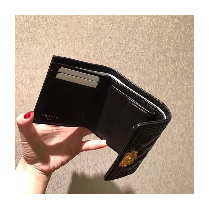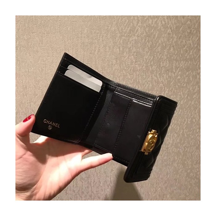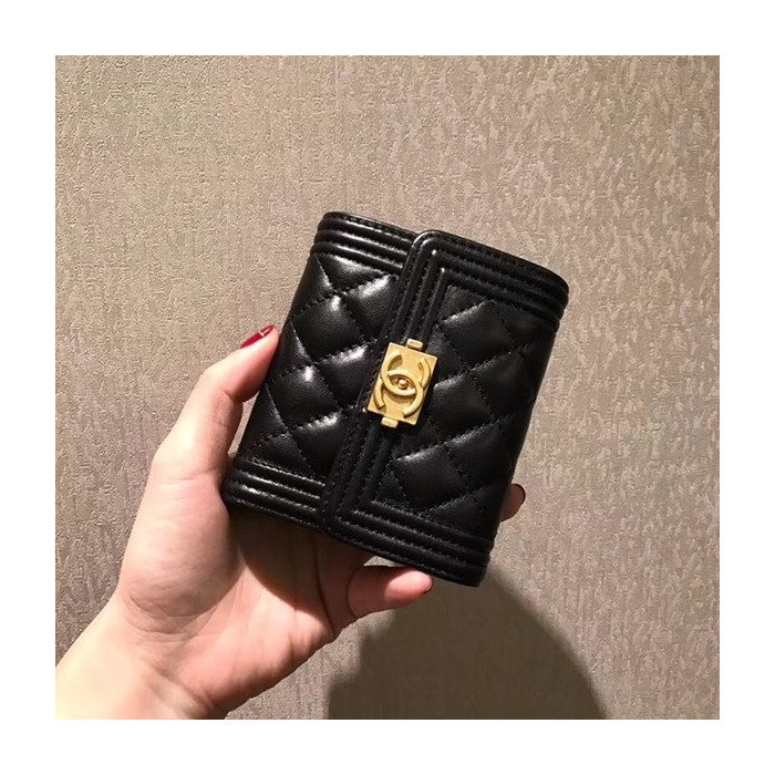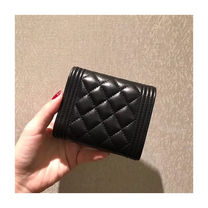 샤넬 보이 반지갑 램스킨 블랙 금장